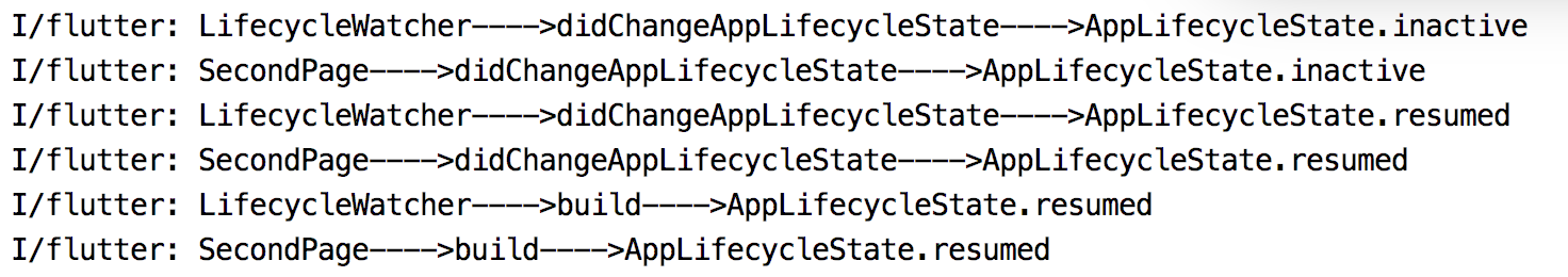 didChangeAppLifecycleState(AppLifecycleState.inactive) -> didChangeAppLifecycleState(AppLifecycleState.resumed) -> build