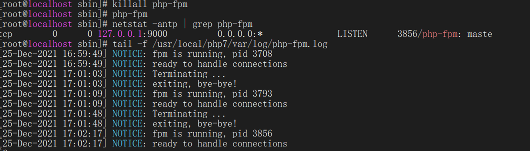 #杀死当前php进程,重启