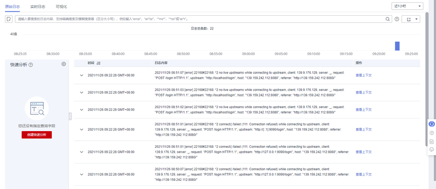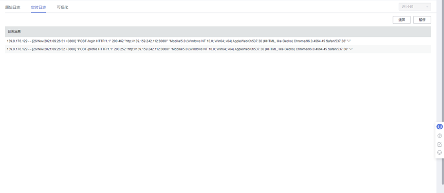 - 控制台进入日志管理界面,点击对应的日志组以及日志流查看原始日志以及实时日志。