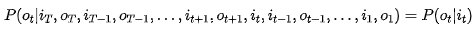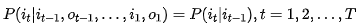 I是长度为T的状态序列,O是对应的观测序列: