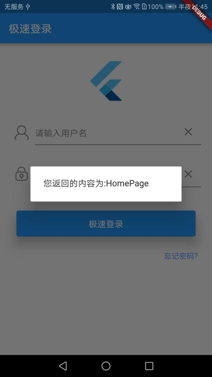 Tips: 如果在 HomePage 页面中调用 Navigator.pop(context); 会出现半个黑屏情况,所以小菜并不建议这种方式销毁页面,但是点击返回按钮是正常的。