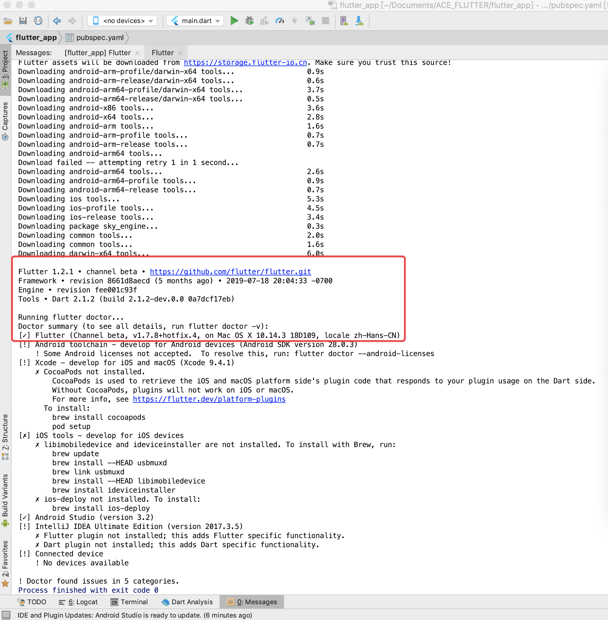Flutter 的更新很频繁,而我们本地的环境可能会是一个较低的稳定版本,而我们使用的插件可能版本较高,在集成时可能会遇到如下冲突;