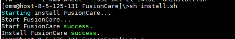 - 步骤 7 执行sh install.sh,安装和启动FusionCare。