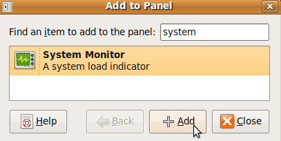 选择“system” -> 选择“System Monitor” -> 单击“Add”,如下所示。