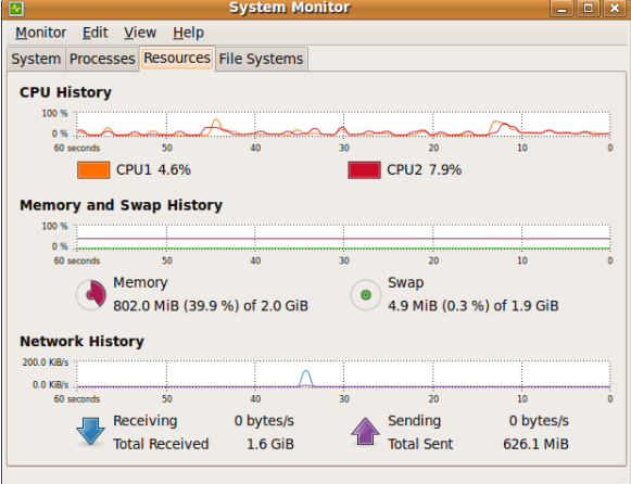 与 Windows 任务管理器类似,Ubuntu提供了一个系统监控实用程序,可以显示正在运行的进程、内存使用情况、文件系统使用情况。除了监控之外,您还可以从系统监控用户界面执行多项操作——例如终止正在运行的进程。