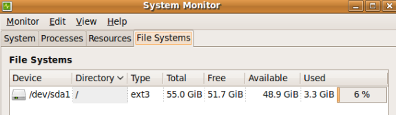 图: Ubuntu 系统监视器 – 文件系统选项卡