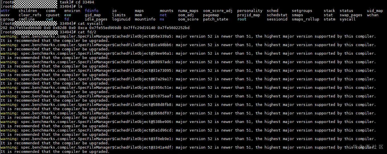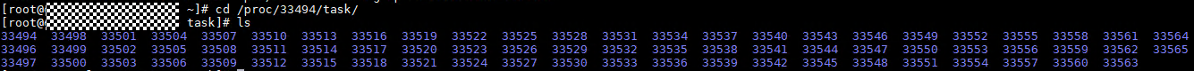 执行cd /proc/33494/task进入对应进程ID的task路径