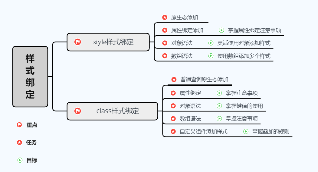 总结:设置class样式需要使用v-bind绑定;