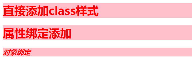 <h1 :style="'color:red;font-size:60px;background-color:pink;'">属性绑定添加的style样式</h1>