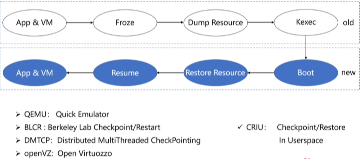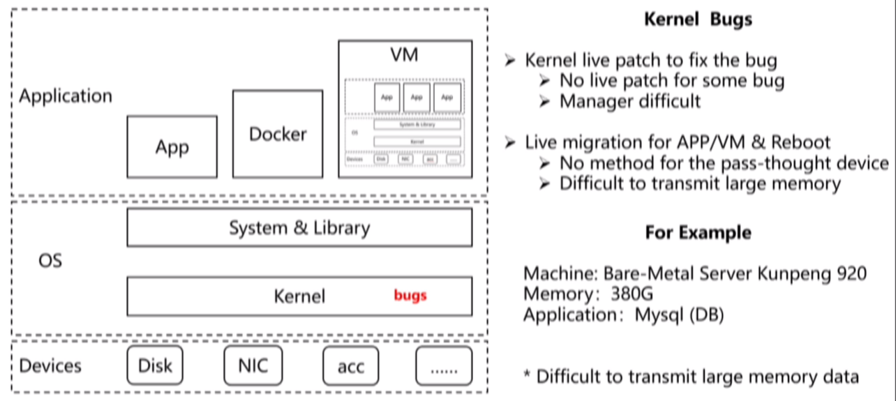 Linux kernel有许多代码且代码还在增加,os代码质量良莠不齐,因此会出现许多cve漏洞之类的问题,针对这种问题大体有两种解决办法:热补丁和热迁移。