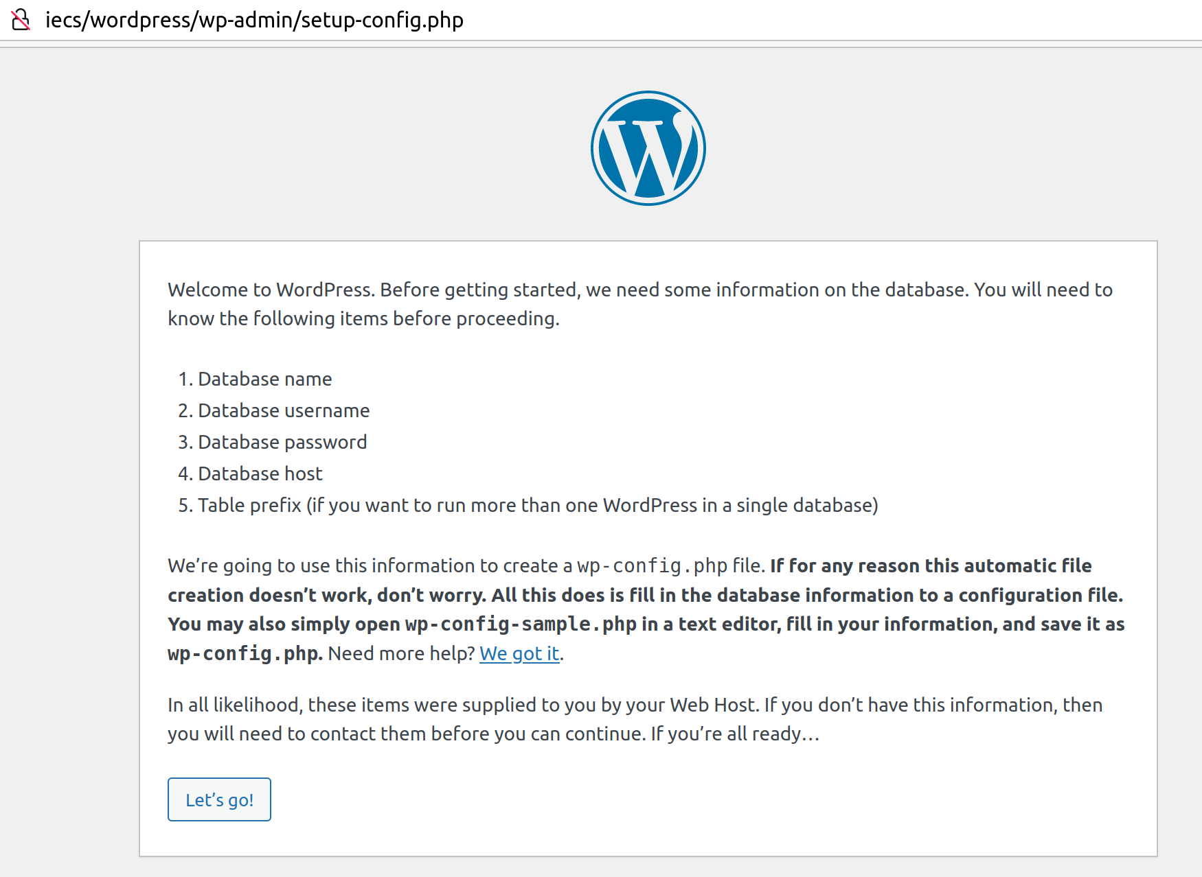在访问wordpress的配置页面时,http://yourip/wordpress