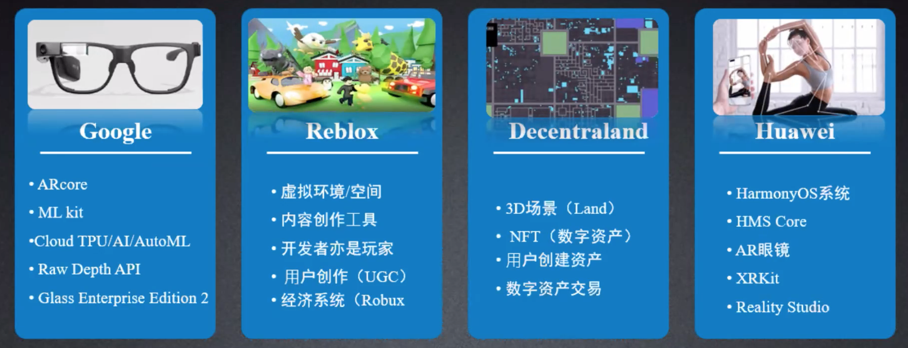 华为利用鸿蒙系统也创造了很多元宇宙的应用设备和软件,比如 AR 眼镜、XRKit 等。