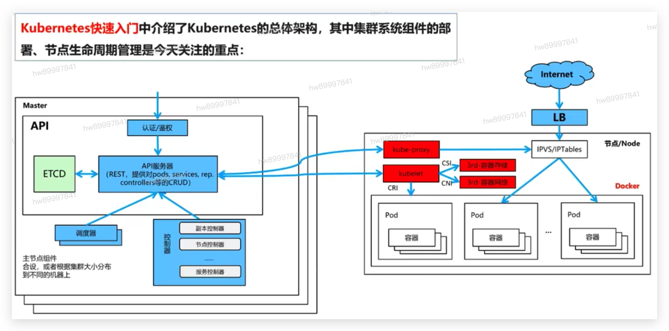 每一个Node节点都安装了Node组件,包括kubelet、kube-proxy、container runtime。