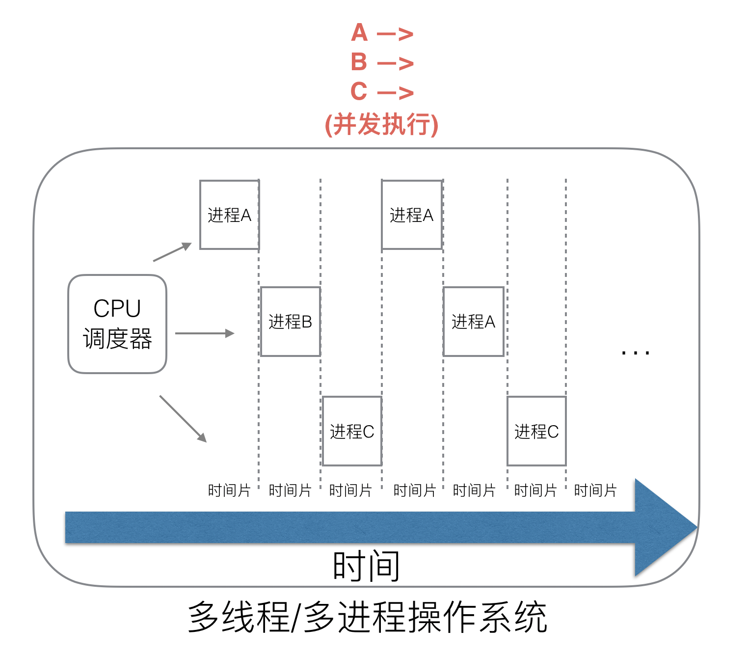 后来操作系统就具有了最早的并发能力:多进程并发,当一个进程阻塞的时候,切换到另外等待执行的进程,这样就能尽量把CPU利用起来,CPU就不浪费了。
