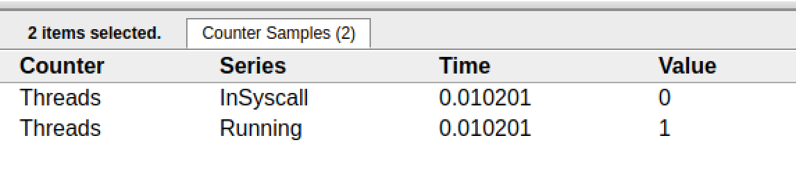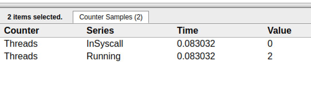 SCHED 4023ms: gomaxprocs=2 idleprocs=2 threads=4 spinningthreads=0 idlethreads=2 runqueue=0 [0 0]