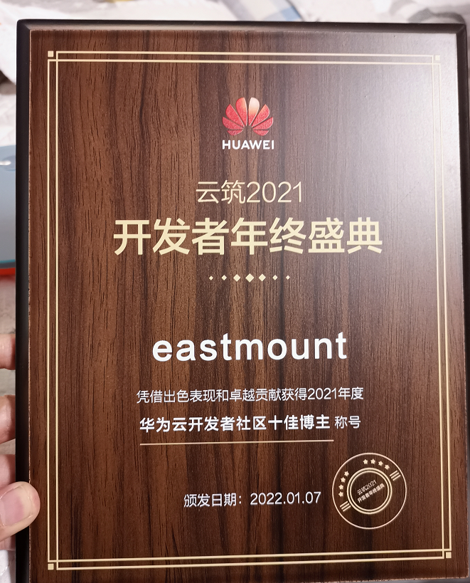 非常荣幸获得了华为云的2021年博客十佳,希望未来能继续分享更多好文章,加油!