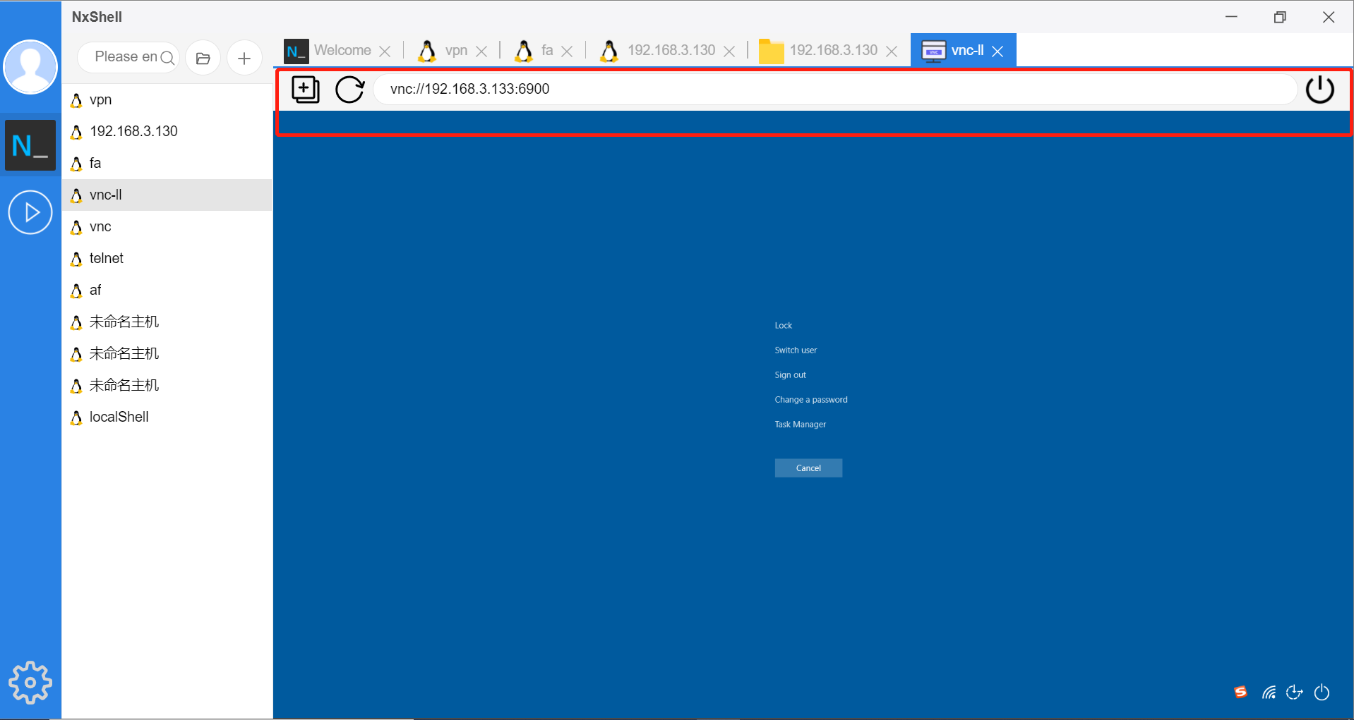 NxShell 基于开源的NoVNC项目实现支持vnc协议的客户端会话,这样可以很方便的在同一个tab中管理ssh会话以及vnc会话。