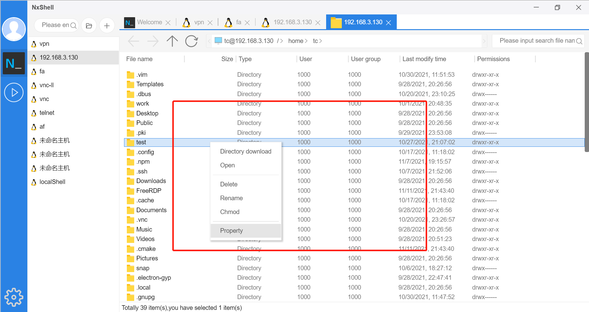 NxShell提供类似windows文件管理器类似的远程文件管理功能,支持文件创建、修改文件名、删除、修改权限等。支持文件批量下载上传等功能。