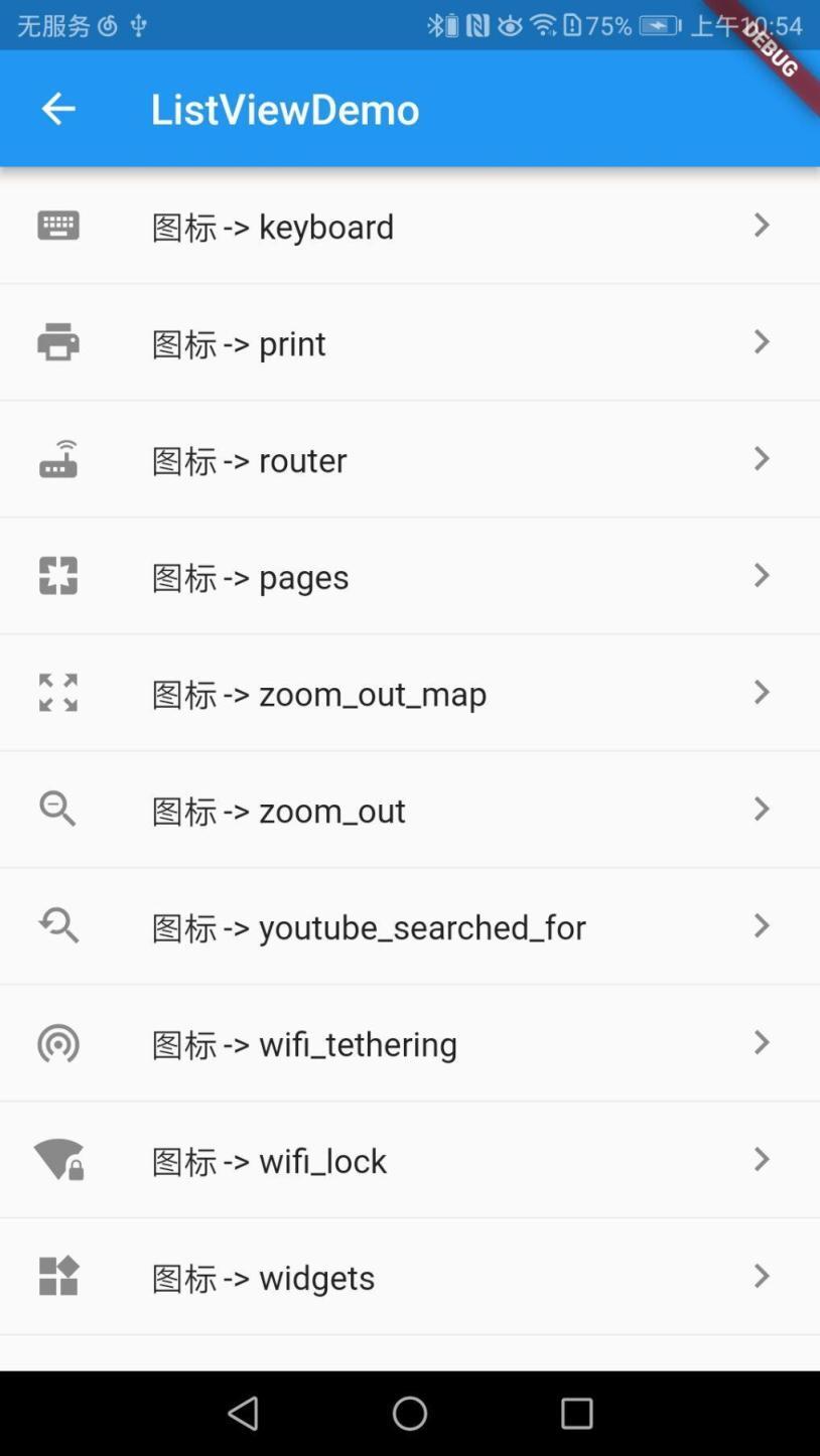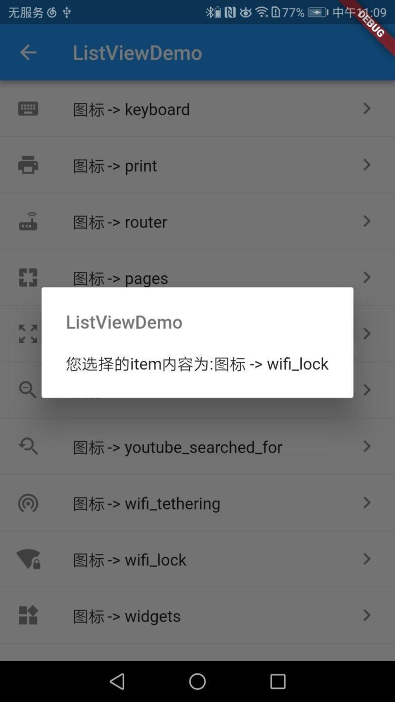 无论是用那种绑定数据的方式首先第一步都要添加数据,小菜测试基本样式包括 item 前置图标(leading)、标题文字(title)、后置图标(trailing),并设置了基本的 onTap() 方法;如下: