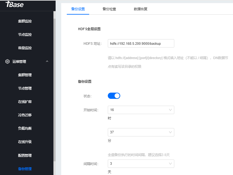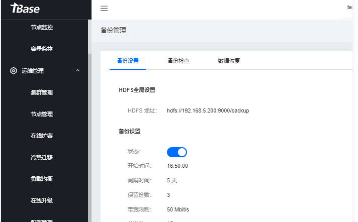 tbase配置hdfs备份