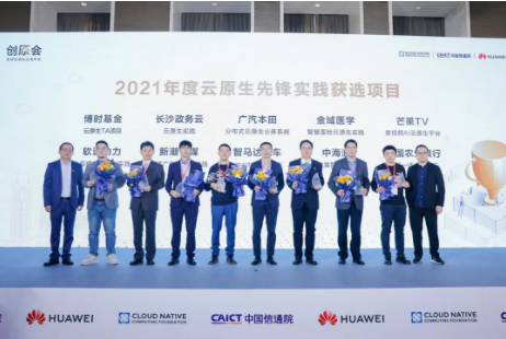 12月30日,云原生计算基金会(CNCF)、中国信通院和华为云共同发起的云原生交流平台“创原会”成立一周年之际,2021创原会年度峰会在深圳举办。会上公布了2021云原生技术创新/先锋实践评选结果,包括中国农业银行、深圳证券交易所、长沙政务云、北京邮电大学、中海油、智马达(Smart)汽车、顺丰科技等在内的20家单位,凭借在过去一年对推动云原生发展做出的杰出贡献,荣获“云原生十大技术创新/先锋实践”的殊荣,CNCF中国区总监Keith Chan、华为云CTO张宇昕为获奖代表颁发证书。