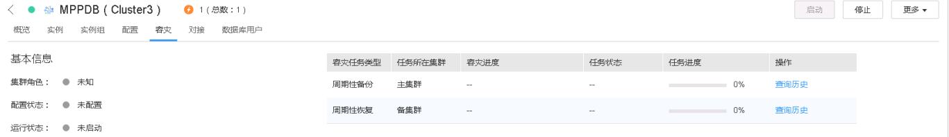 当主备集群的参数都已配置并保存后,即可在主备集群上启动容灾任务。