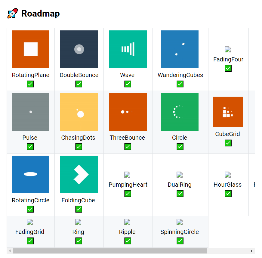 小菜偷了个懒,借用一个三方库 flutter_spinkit,这个 loading 库集成简单而且效果多样,基本包含日常中常见的样式。