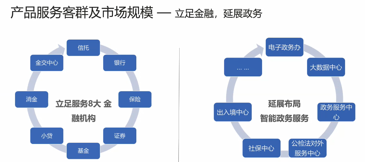 2.4 产品服务客群及市场规模——立足金融,延展政务