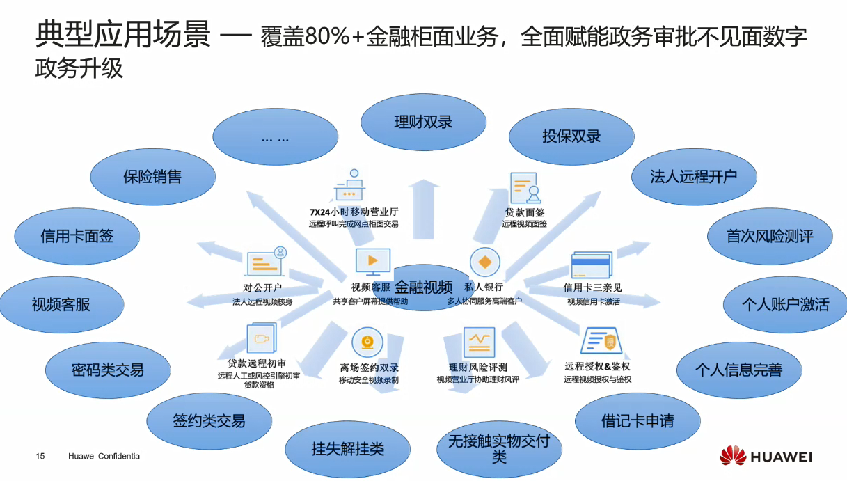 应用场景:远程开户、视频面签、理财产品认购双录认证、理财产品改签双录认证、理财产品退款双录认证、额度申请双录认证、贷中提现双录认证、投保双录认证、保险理赔远程定损、车金融贷款双录认证、合同确认双录认证、网上政务面签审批等。
