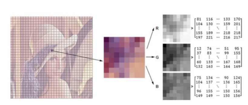 RGB图像由格式为M×N×3的三维数组组成,其中的“3”可以理解为三幅M×N的二维图像(灰度值图像)。这三幅图像分别代表R、G、B分量,每个分量的像素点取值范围是[0,255]。 ...