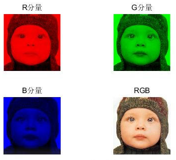 RGB图像由格式为M×N×3的三维数组组成,其中的“3”可以理解为三幅M×N的二维图像(灰度值图像)。这三幅图像分别代表R、G、B分量,每个分量的像素点取值范围是[0,255]。