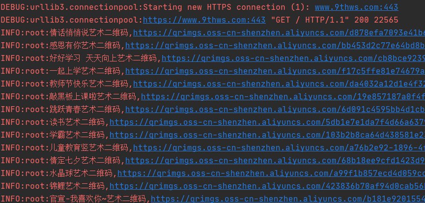 本次代码测试输出采用的 logging 模块实现,效果如下图所示。
