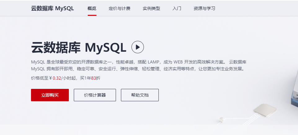 服务地址:https://www.huaweicloud.cn/product/mysql.html