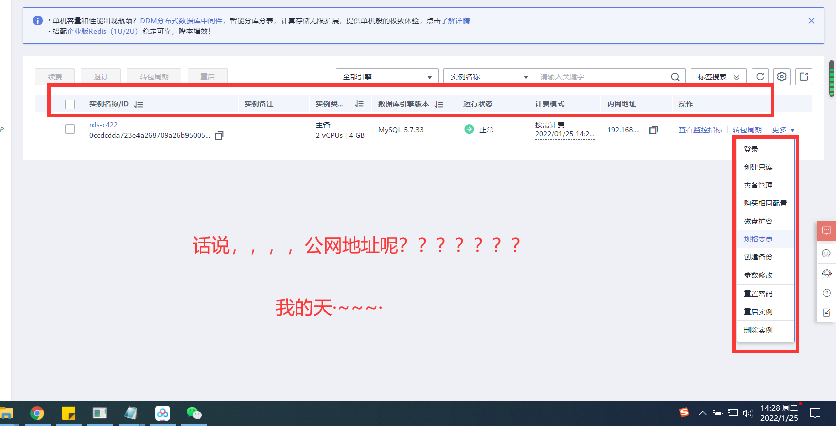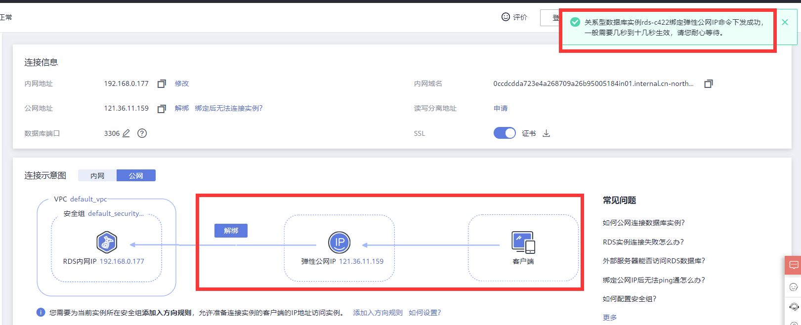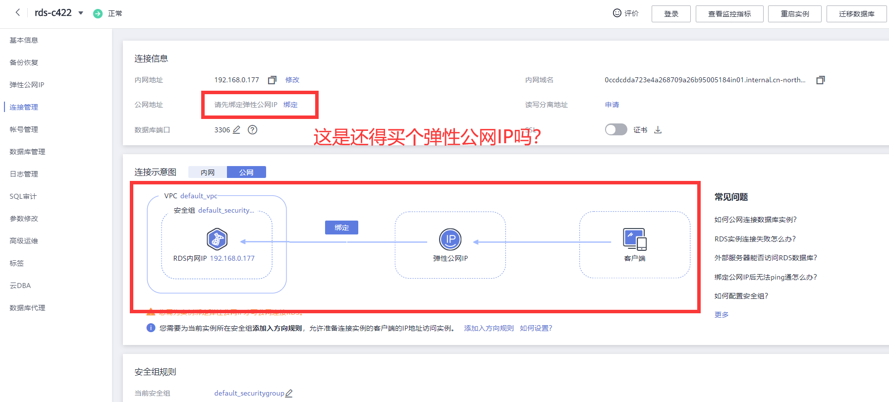 公网的动态IP随着MySQL一起绑定上在购买页面不好吗?我配置了将近50分钟。这着急用还不得急死啊,可怜的程序员。