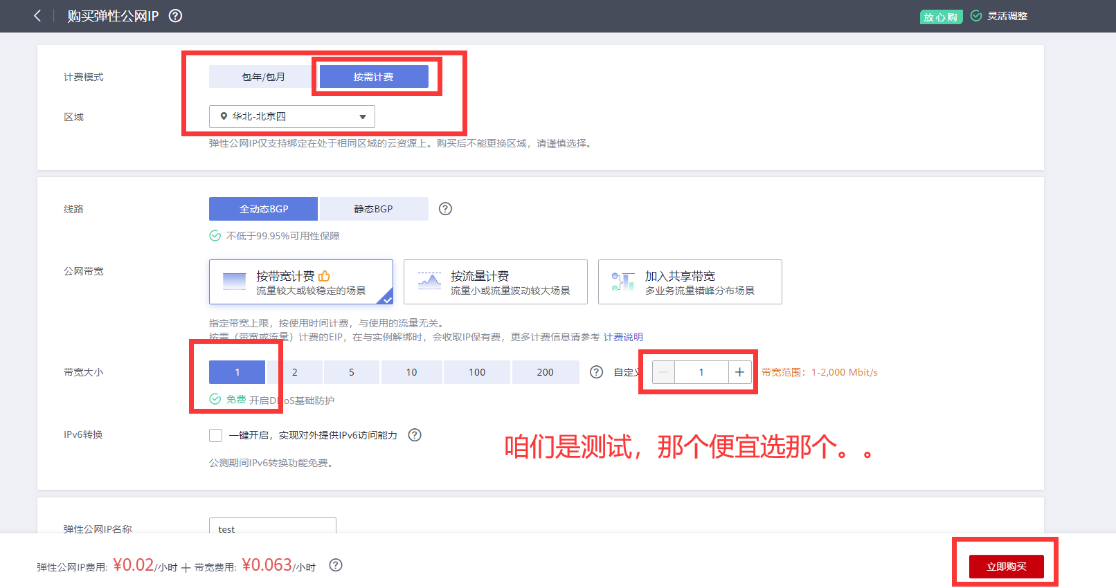 用最划算的方式选择,毕竟咱们是测试,能连上就行,公司需要的时候公司买单咱们再选合适的