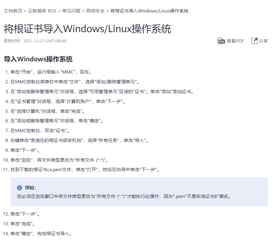 公网一定得配置一下证书吗?数据库这个东西也不贵,面向大众的,这样操作起来真的比较麻烦。