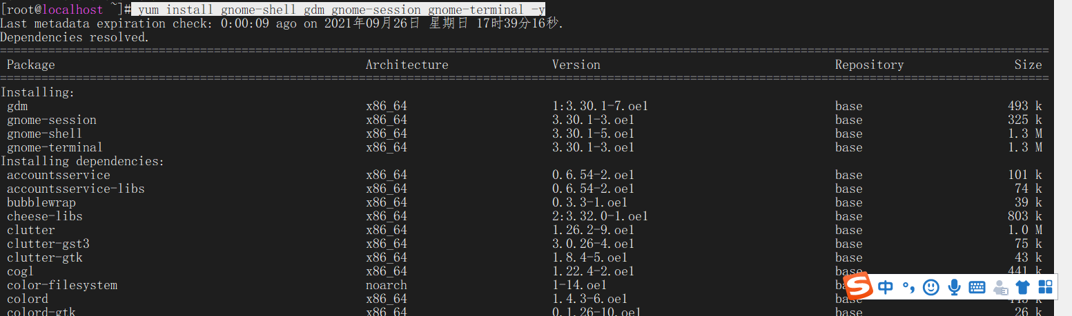 yum install gnome-shell gdm gnome-session gnome-terminal -y