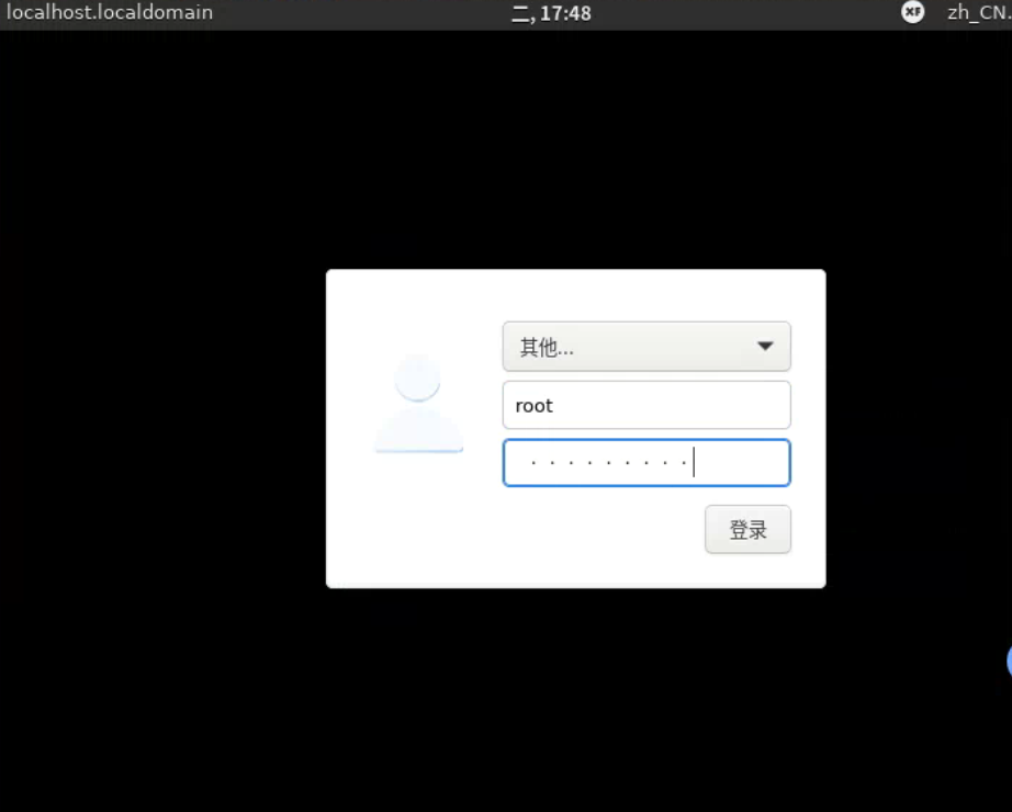#登录管理器启动后,在右上角左侧选择"xfce-session" 输入用户名、密码登录