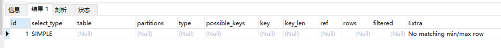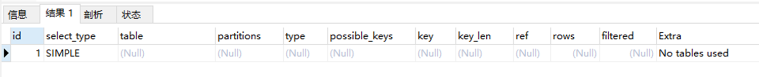查询语句中where子句用于为false时 提示该信息