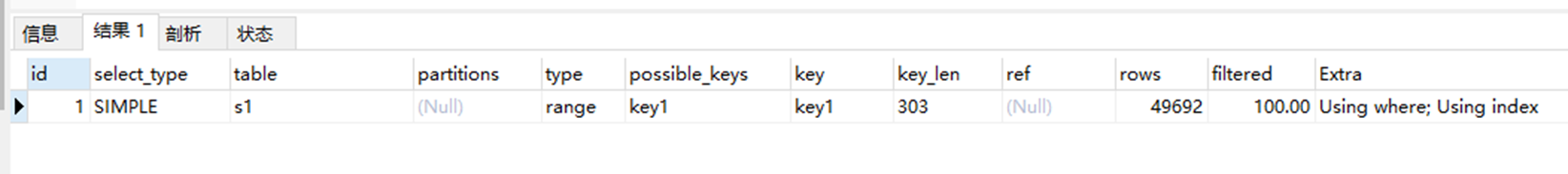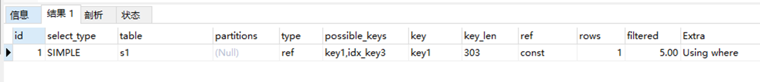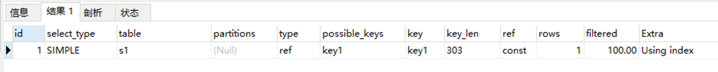 explain select key1 from s1 where key1 = "alex";