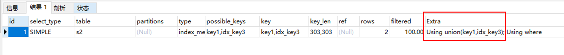 如果出现了 using intersect() 意味着优化器对索引进行了合并,减少检索范围