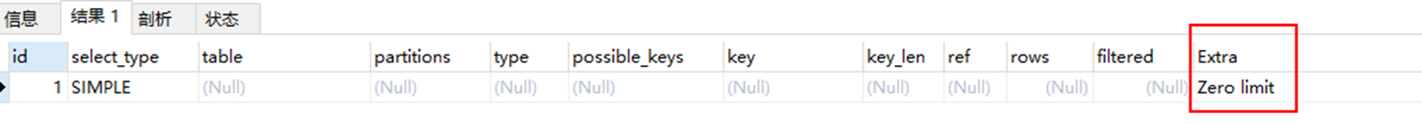 当limit 子句参数为0, 表示压根不打算从表中读出任何记录,会提示 zero limit