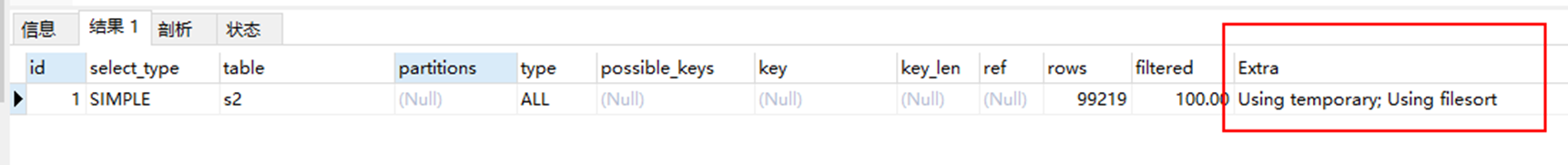 11 Using filesort Using temporary