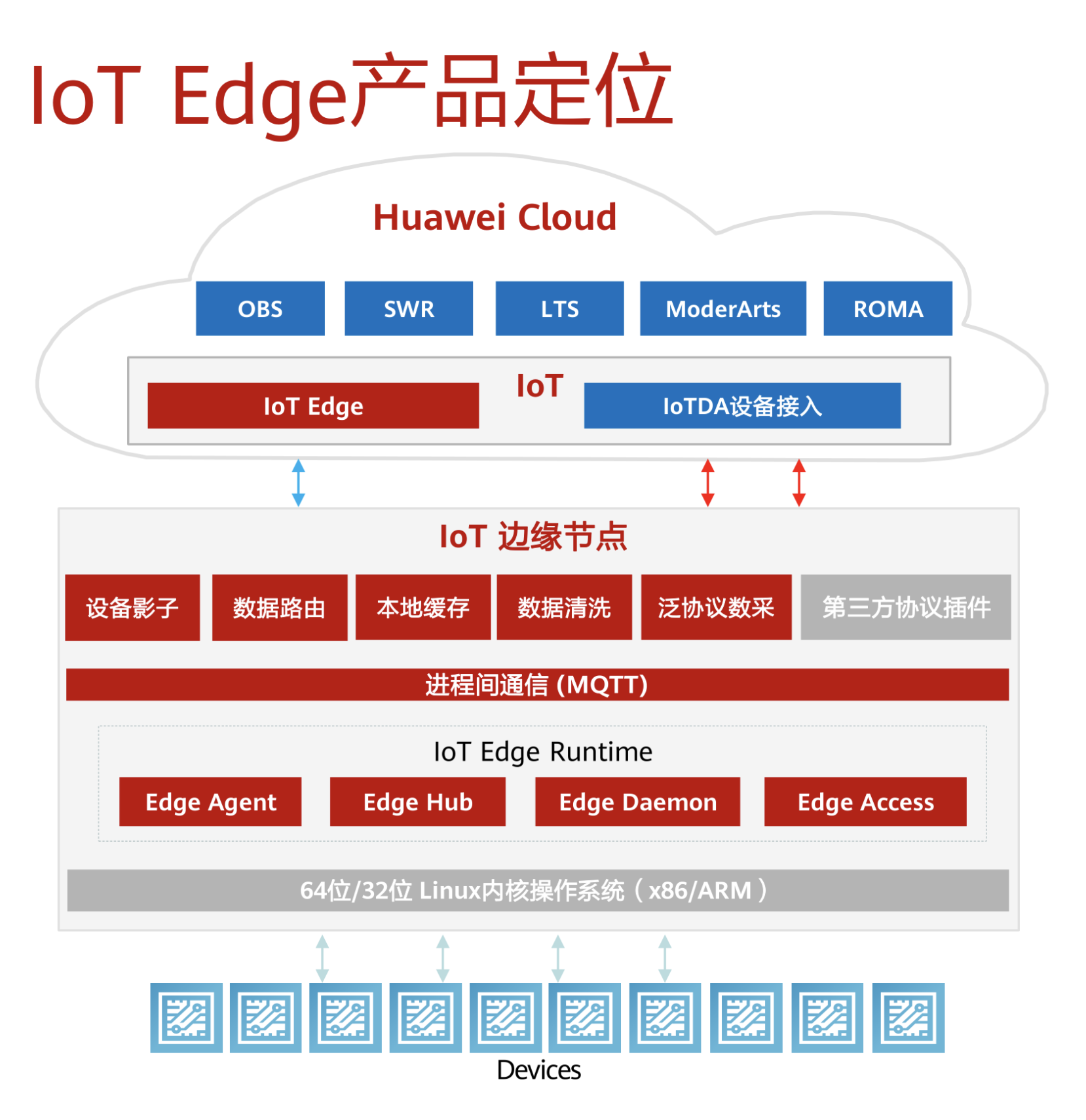 华为 IoT Edge 是华为云 IoT 平台的边缘服务,作为物联网平台的现场数据入口,提供容器化和进阶级运行时软件作为底座,支持泛协议接入;