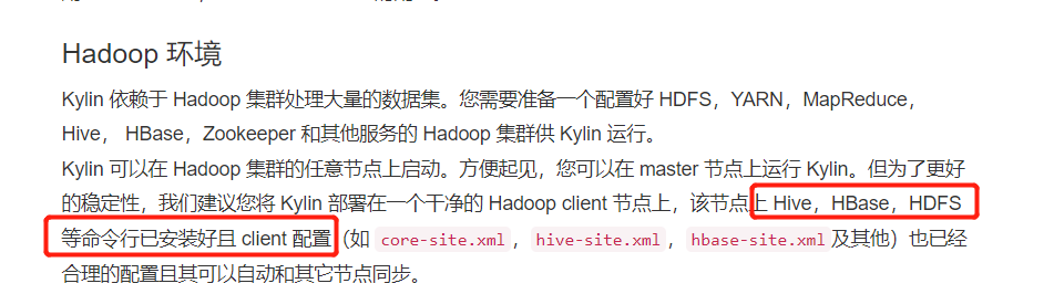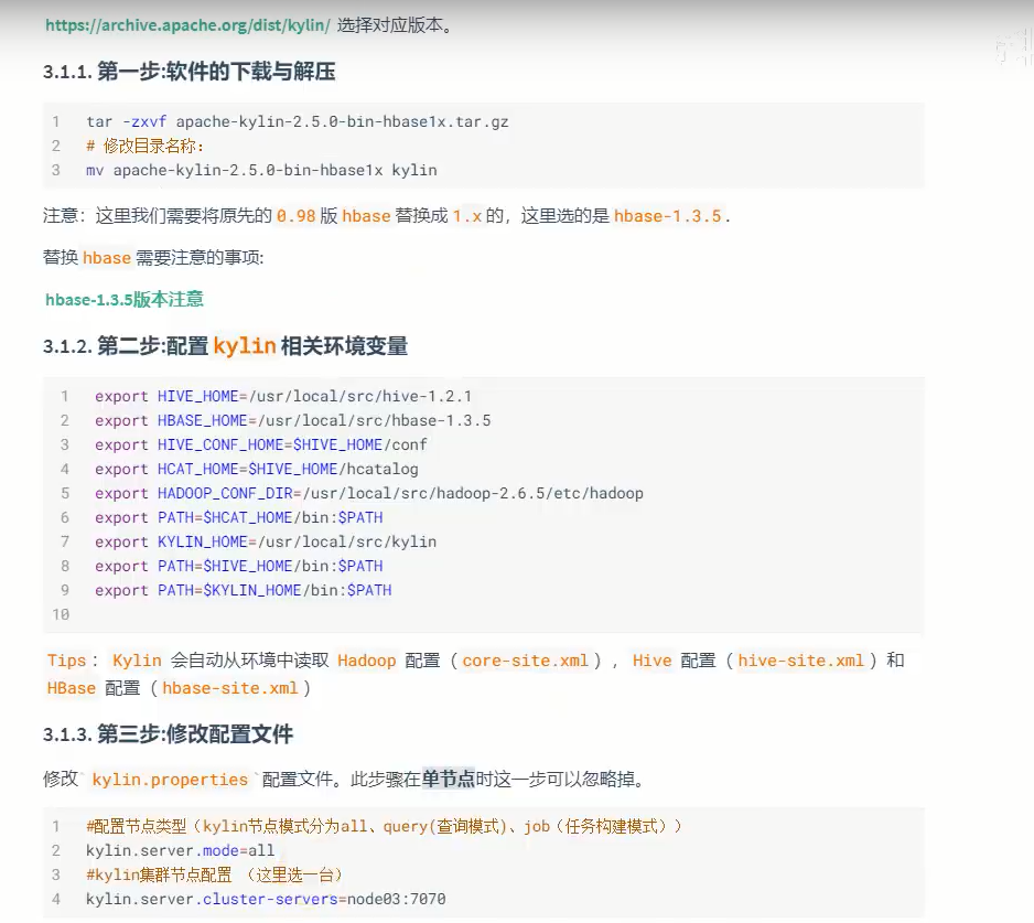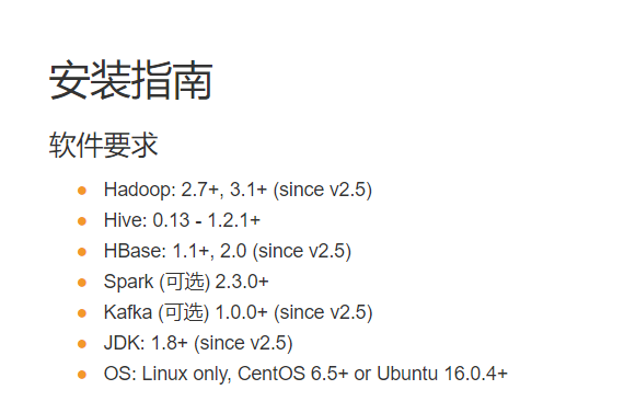 以kylin3.1.3为例,下图为官网中kylin安装所需要的环境配置