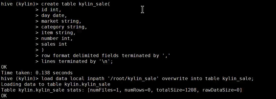 3.2 在hive中创建一个要预计算的表,并加载使用的数据。