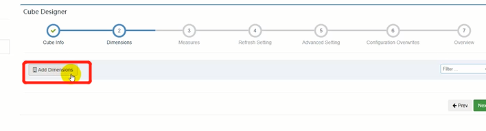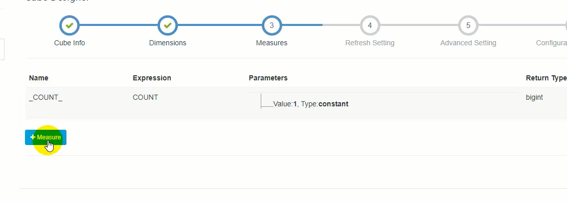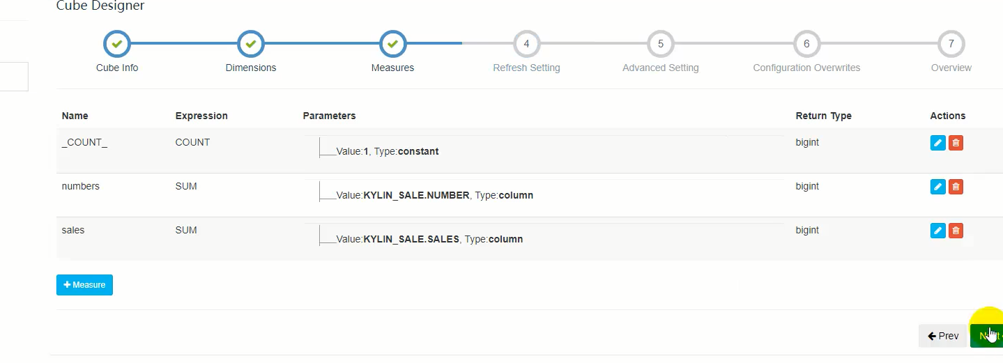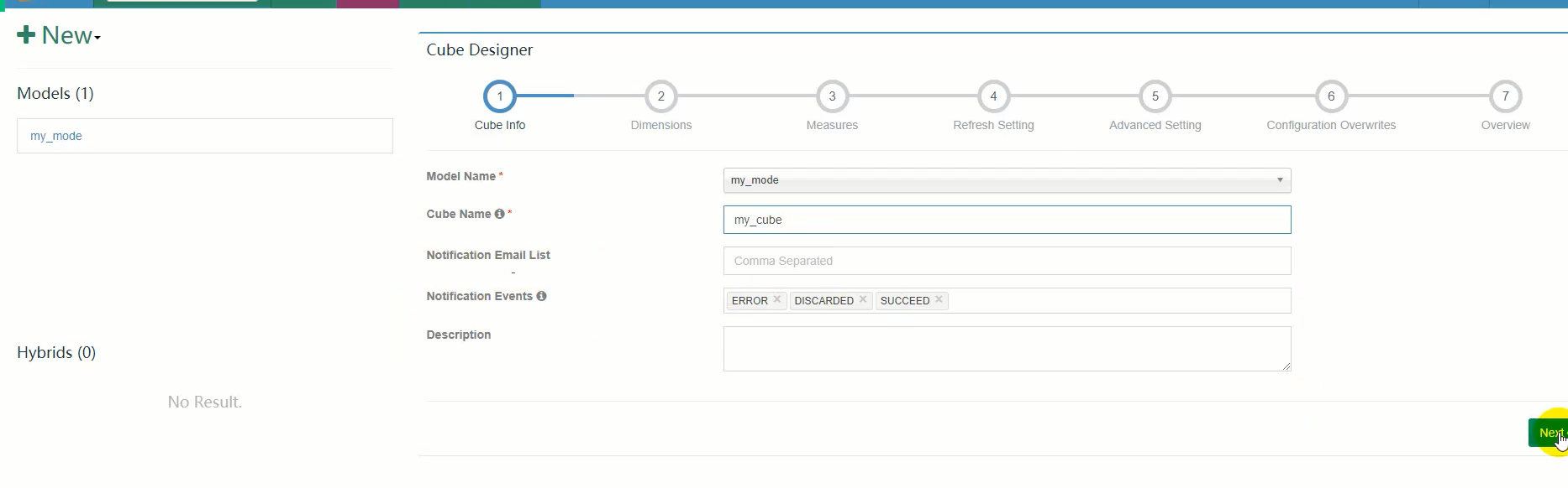 首先需要创建一个数据模型,即对所有维度进行组合,对于这N个维度,组合的可能性共有2^N种(但实际使用是2^N-1种,因为0的那种不需要统计进来),这没一种维度的组合,将度量进行聚合运算,然后将运算结果保存为一个物化视图,称为Cuboid。而所有的Cuboid组合成一个整体称为Cube,即由多个按维度聚合的物化视图的集合。