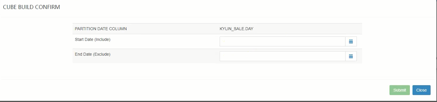 点击build后,会弹出下面的日期选项,选择需要计算的时间段,这里的时间就是上面设置的时间字段对应的,然后即进行预计算