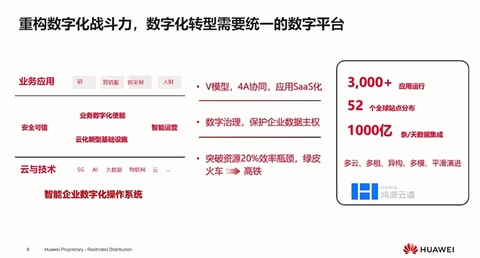 同时,华为希望在提升自身效率、效益时,通过自身实践的开放,与行业合作伙伴一起,服务于广大企业,为千行百业的数字化转型做出杰出贡献。