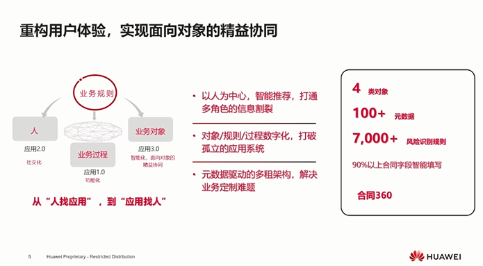 以人为中心,智能推荐,打通多角色的信息割裂。对象/规则/过程数字化,打破孤立的应用系统。元数据驱动的多租架构,解决业务定制难题。